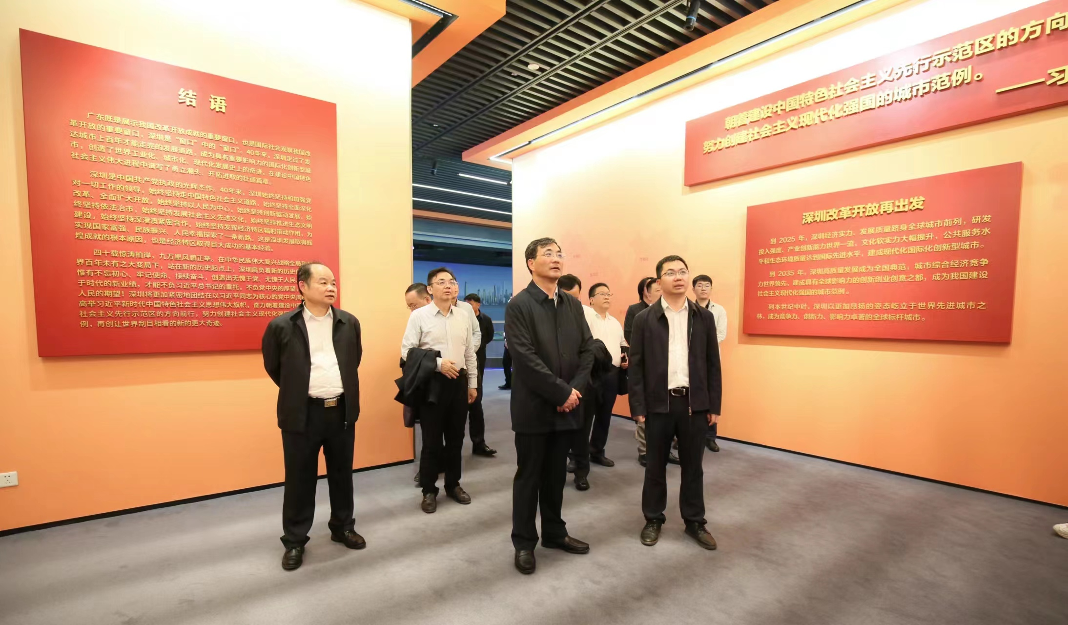 李永军一行首先来到深圳经济特区建立四十周年展览现场,听讲解员讲述深圳四十年以来的城市建设和经济发展,感受经济特区从先行先试到先行示范的发展变化。